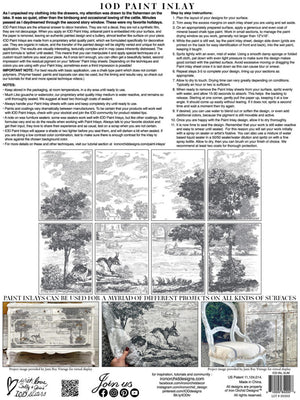 IOD Paint Inlays -maalit ovat valmistettu taiteilijalaatuisista maaleista, jotka ovat kehitetty erityisesti koristekäyttöön.