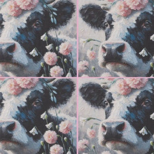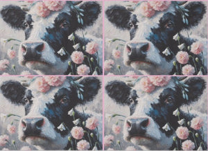 4 x Lehmä ja kukat - yksittäiset decoupage taidearkit